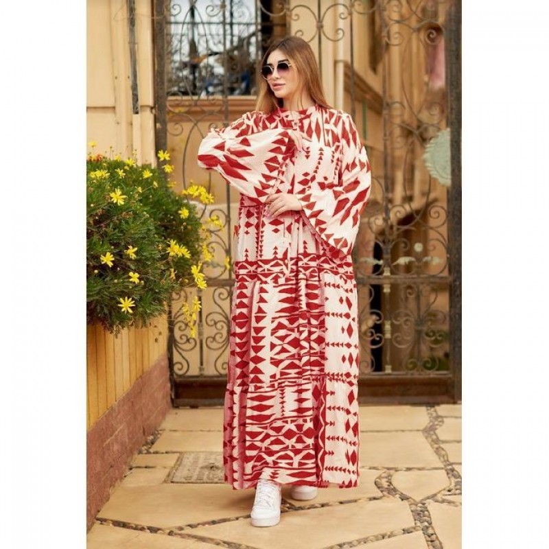 فستان حريمي مطبوع بتصميم أنيق بأكمام طويلة لون