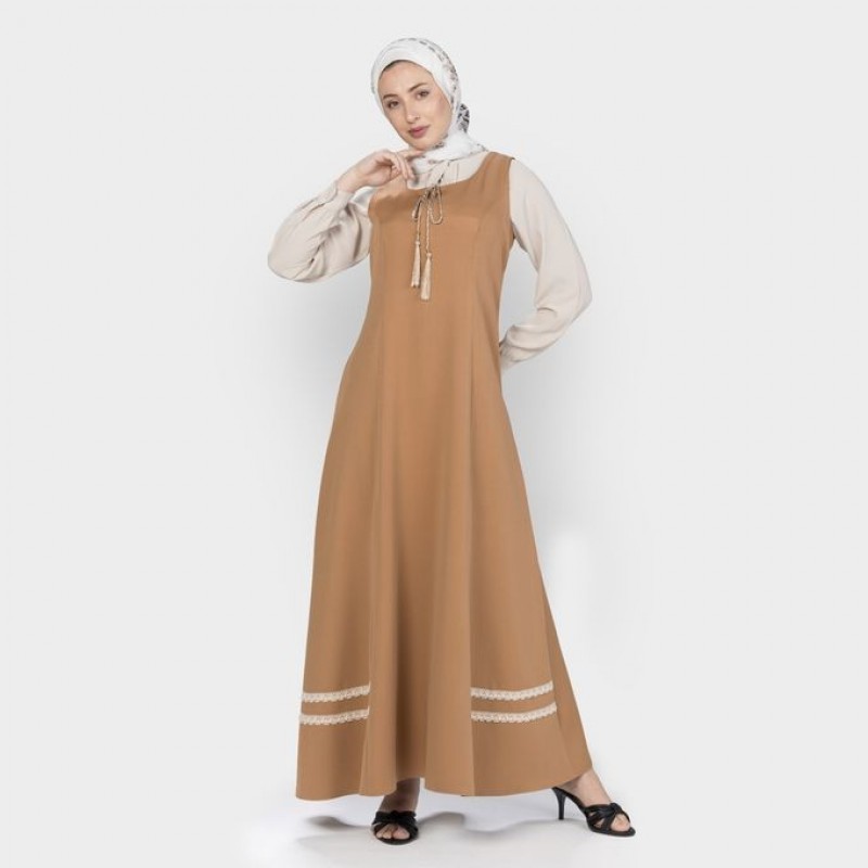 ♠︎تصميم بقصة A-line أنيقة – يضفي انسيابية ورشاقة على الحركة. ♠︎لمسات دانتيل ناعمة على الحاشية – تضيف لمسة من الرقي والجاذبية. ♠︎قطعة متعددة الاستخدامات للتنسيق – ارتديه مع بلوزة أو توب برقبة عالية لمظهر عصري محتشم. ♠︎قماش عالي الجودة – ناعم، خفيف، ومريح لارتداء يدوم طوال اليوم. ♠︎تفصيل أنيق بشرابة على الرقبة – لمسة عصرية مميزة تضيف مزيداً من الأناقة.