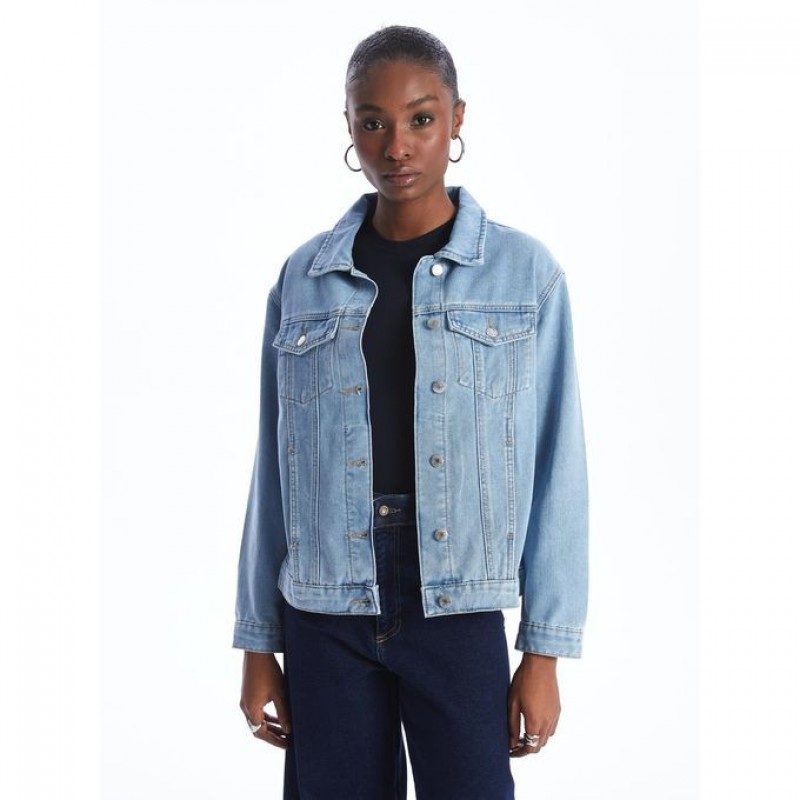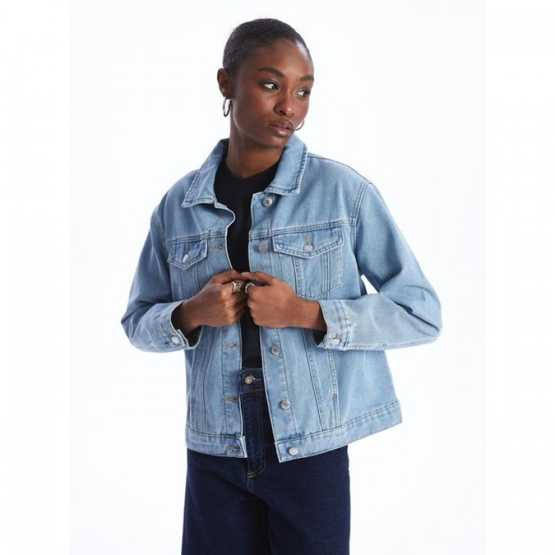 LC Waikiki Shirt Neck Regular Long Sleeve Women's Jean Jacket