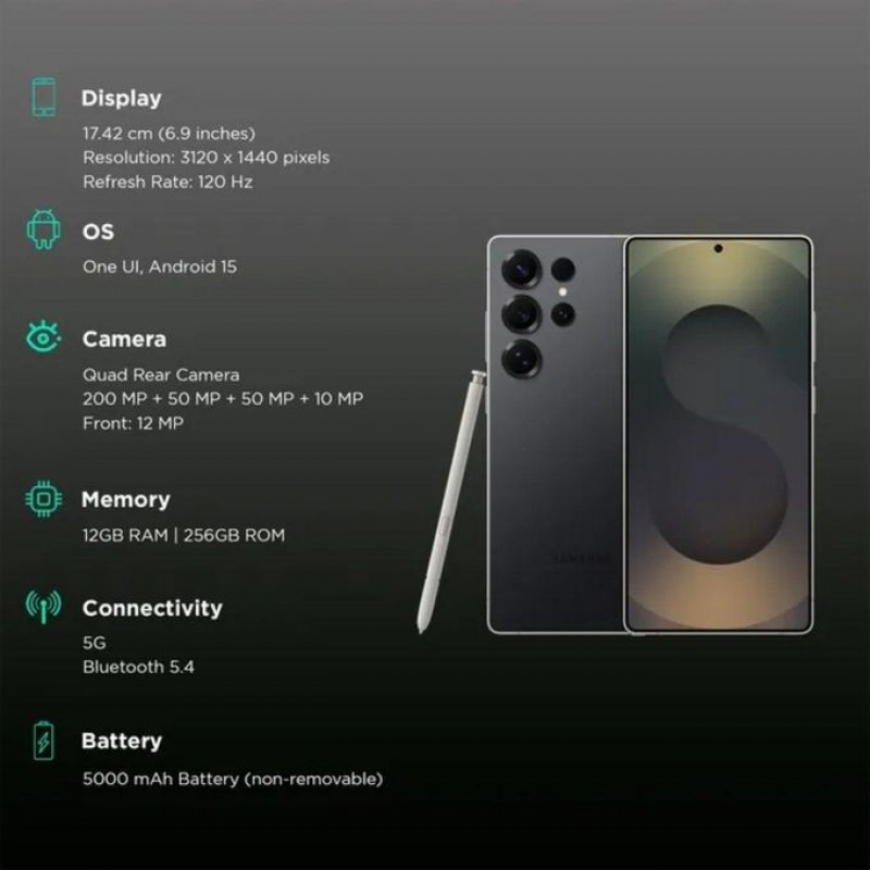 Samsung جالاكسي S25 ألترا دوال شريحة 5G سعة 256GB/12GB - شاشة 6.9 بوصة باللون تيتانيوم الأسود