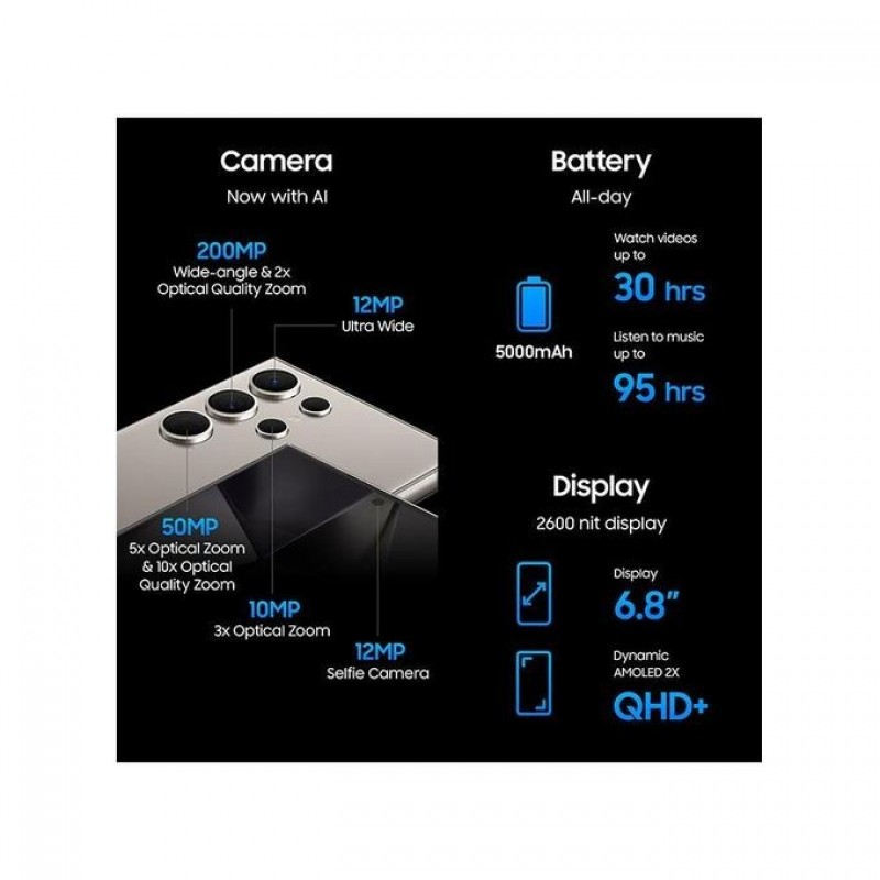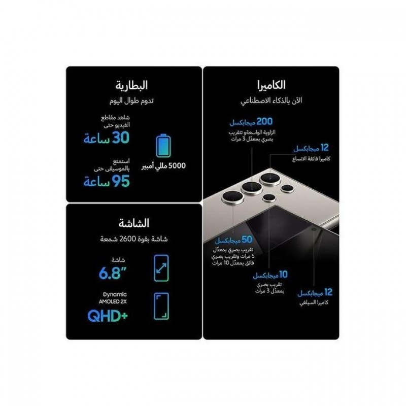 Samsung جالاكسي S24 Ultra 5G ثنائي الشريحة، رمادي تيتانيوم، 12 جيجابايت رام، 256 جيجابايت - إصدار ال