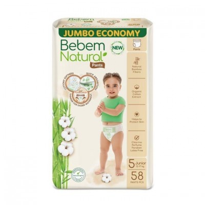 Bebem حفاضات كلوت بي بم طبيعي، عبوة جامبو، جونيور مقاس 5 - 58 قطعة