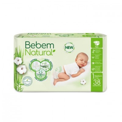 Bebem حفاضات أطفال طبيعية عبوة مزدوجة حجم 1 - 38 قطعة