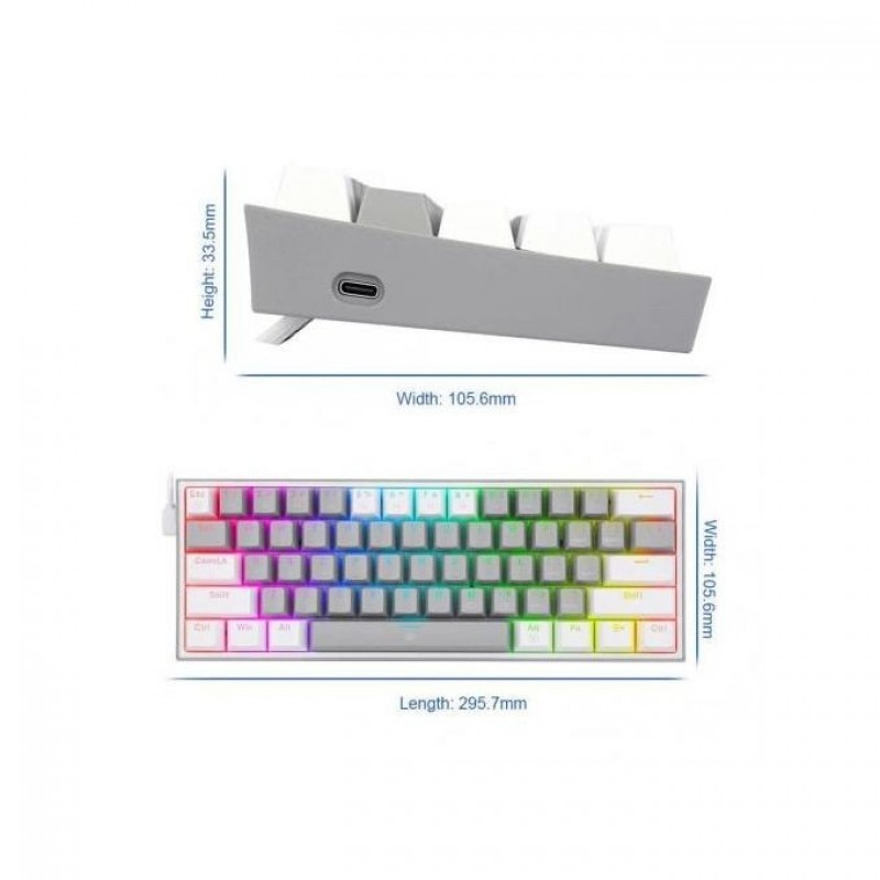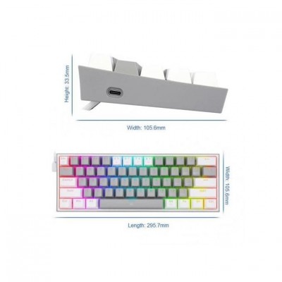 Redragon K617 Fizz Wired RGB Gaming Keyboard, Mechanical gray and white - Red Switch