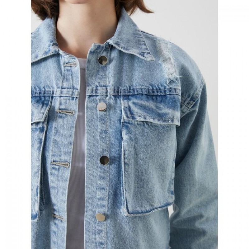 LC Waikiki Shirt Collar Women's Jean Jacket