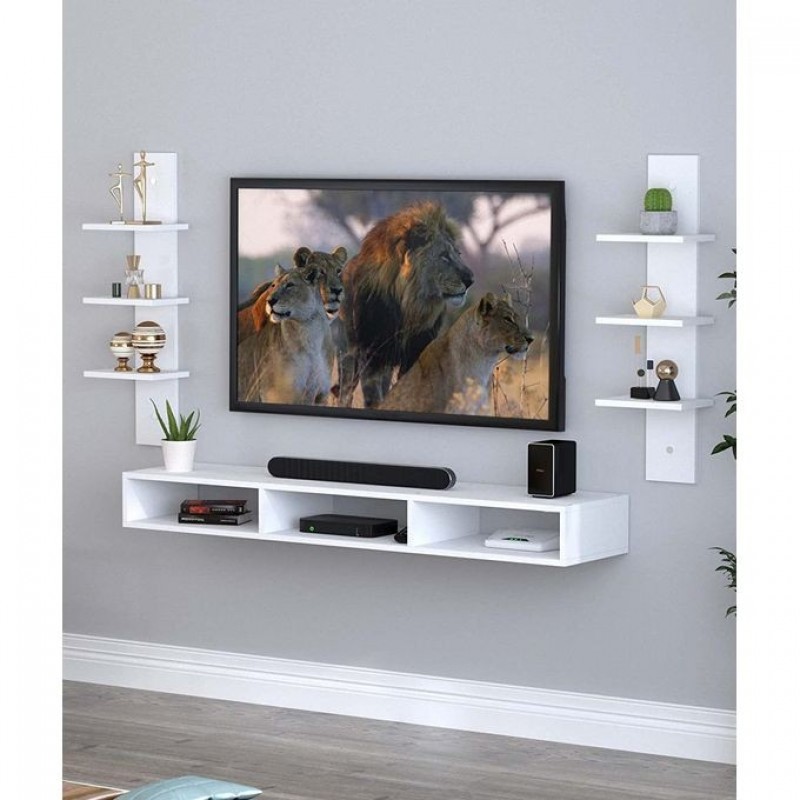 Modern Home وحدة تلفزيون مثبتة على الحائط مع خزانة مع وحدة حامل تلفزيون مع أرفف لغرفة المعيشة (بني م