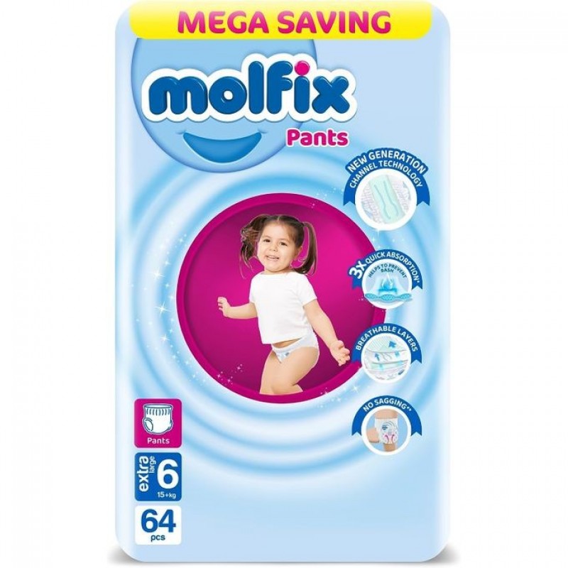 Molfix حفاضات بنطلون عبوة ضخمة مقاس Xlarge 6 - 64 قطعة