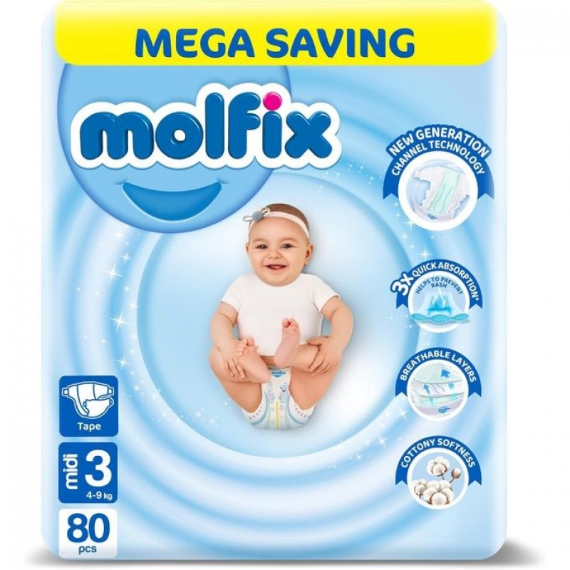 Molfix حفاضات اطفال ميجا مع تقنية 3D فريدة، مقاس 3 وسط - 80 حفاضة