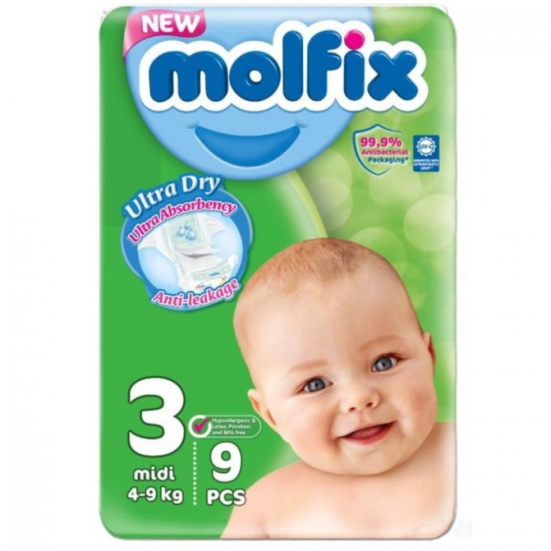 Molfix مجموعة عبوات حفاضات ميدي للاطفال بتقنية ثلاثية الابعاد الفريدة، المقاس 3-9 قطع