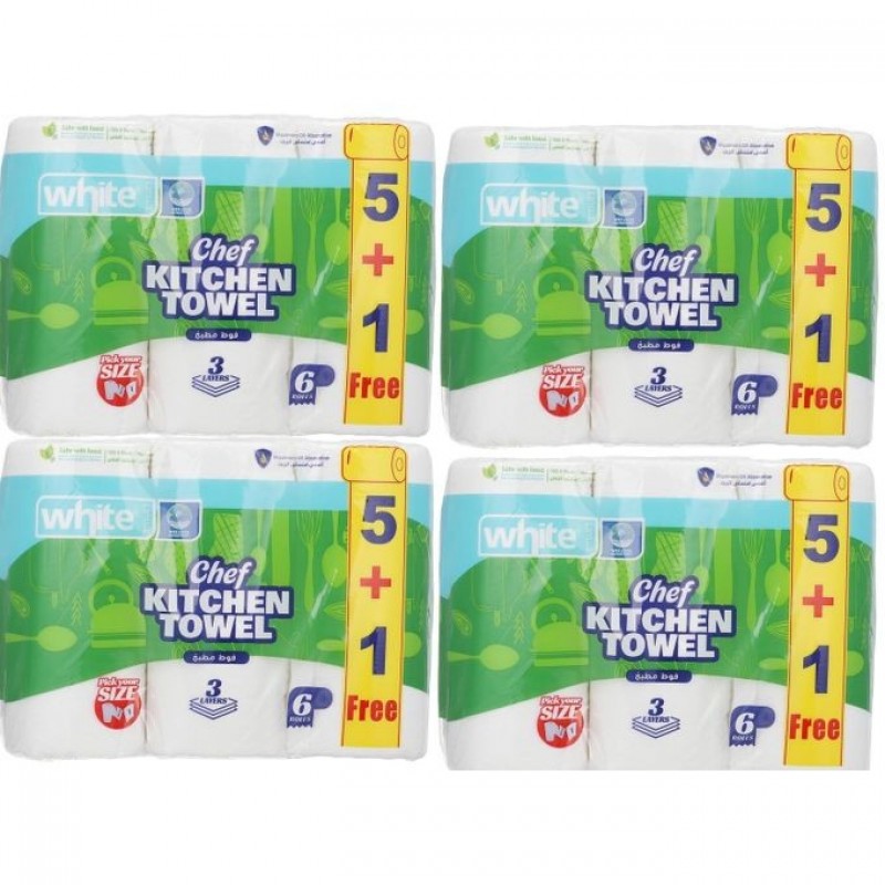 White مناديل مطبخ مضغوط وايت شيف 3 طبقات - 6 رول - 4عبوات